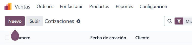 - Dentro del módulo Ventas, hacer clic en el botón Nuevo.